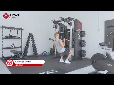 The ALTAS STRENGTH AL‑3136 is an all‑in‑one, space‑saving comprehensive strength training system that combines multiple professional‑grade workout stations into a single compact unit. It integrates a squat rack, Smith machine, functional cable trainer, chin‑up bar, suspension trainer, core trainer, lat pull‑down, and low row station, providing everything you need for a full‑body workout.